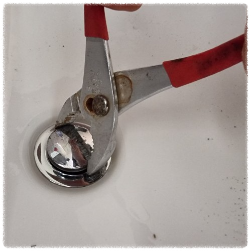 ▽ 물을 흘려보내면서 션~~~하게 내려가는지 확인한다. 그리고 손으로 세면대 마개를 돌려 끼워준다.
