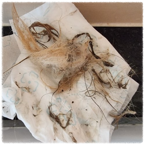 ▽ 너무 꽉 잡지 말고 이빨을 잘 맞춰 돌려 빼주고 가운데 봉 주변에 떡져있는 털을 찾아 빼준다.