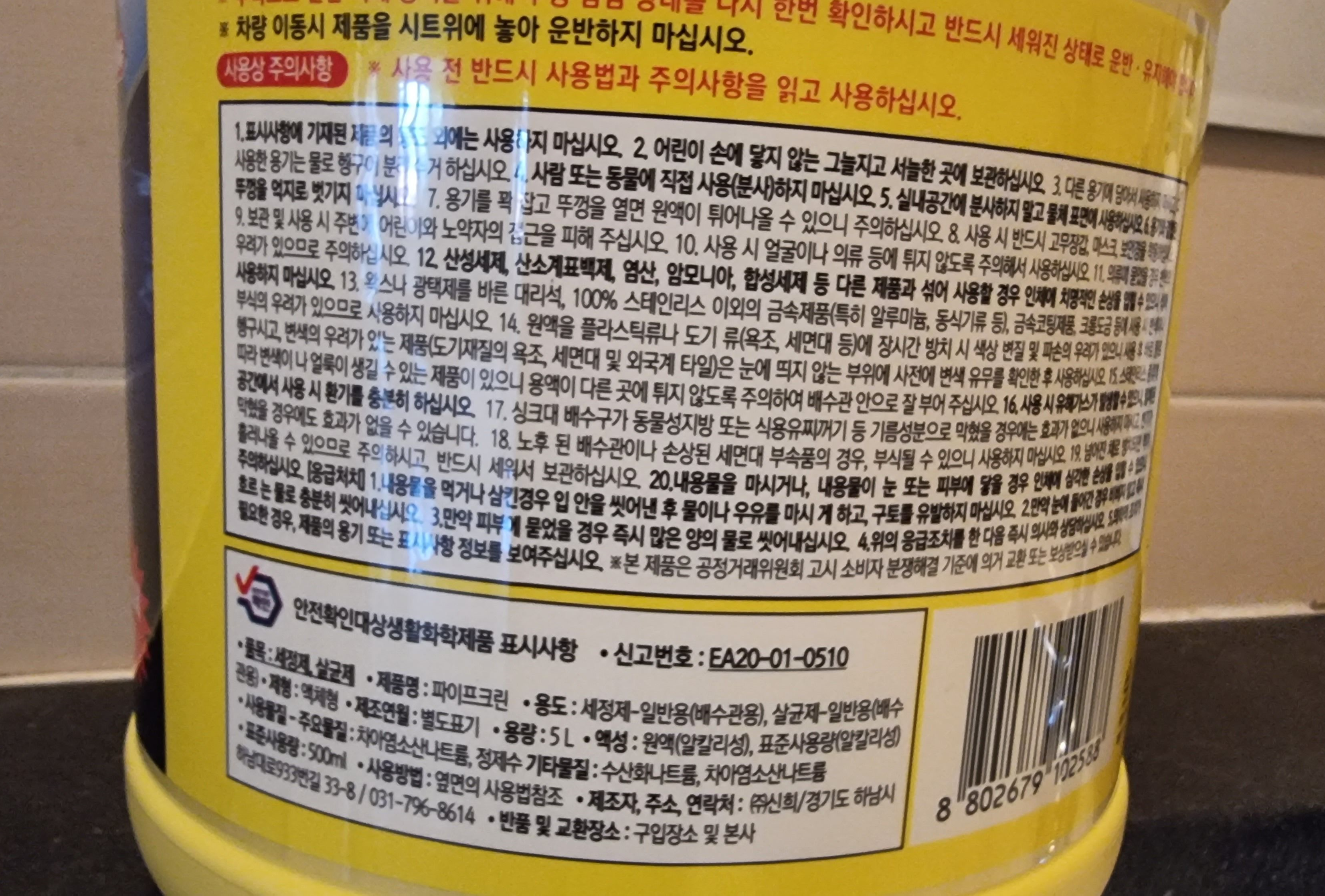 가격은 대체로 저렴하다. 오늘 코스트코에서 구입한 파이프클린도 5리터 1개당 4,990원이다. 한달에 5,000원 투자하여 배관건강 유지하자.